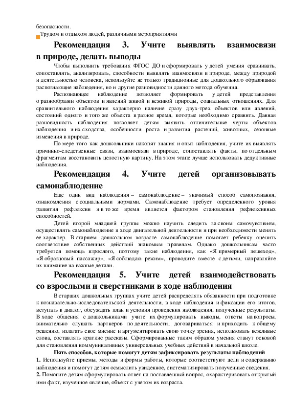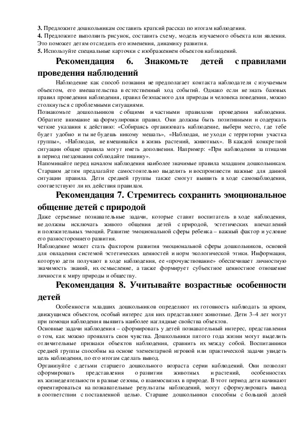 Познакомьте дошкольников с общими и частными правилами проведения наблюдения.