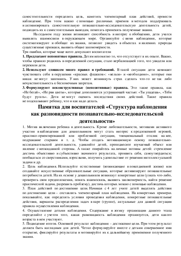 дошкольниками, можно сформулировать цель наблюдения, определить план действий и найти