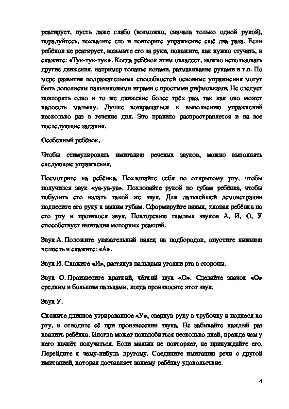 Чтобы стимулировать имитацию речевых звуков, можно выполнять