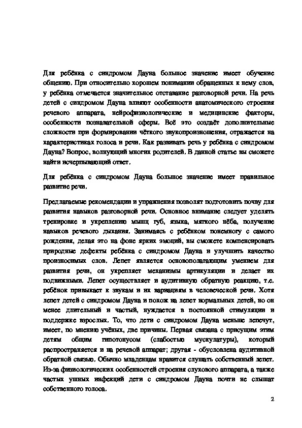 1Для ребёнка с синдромом Дауна большое значение имеет обучение