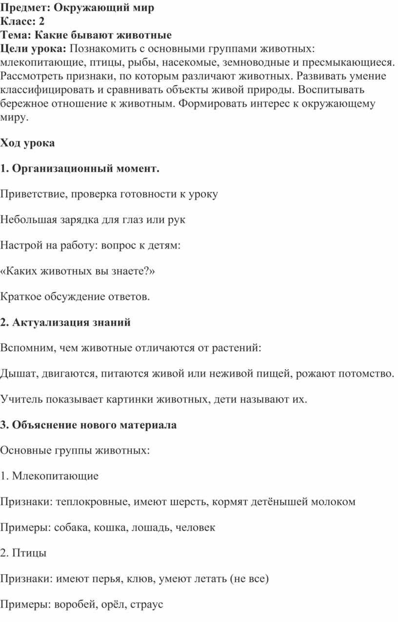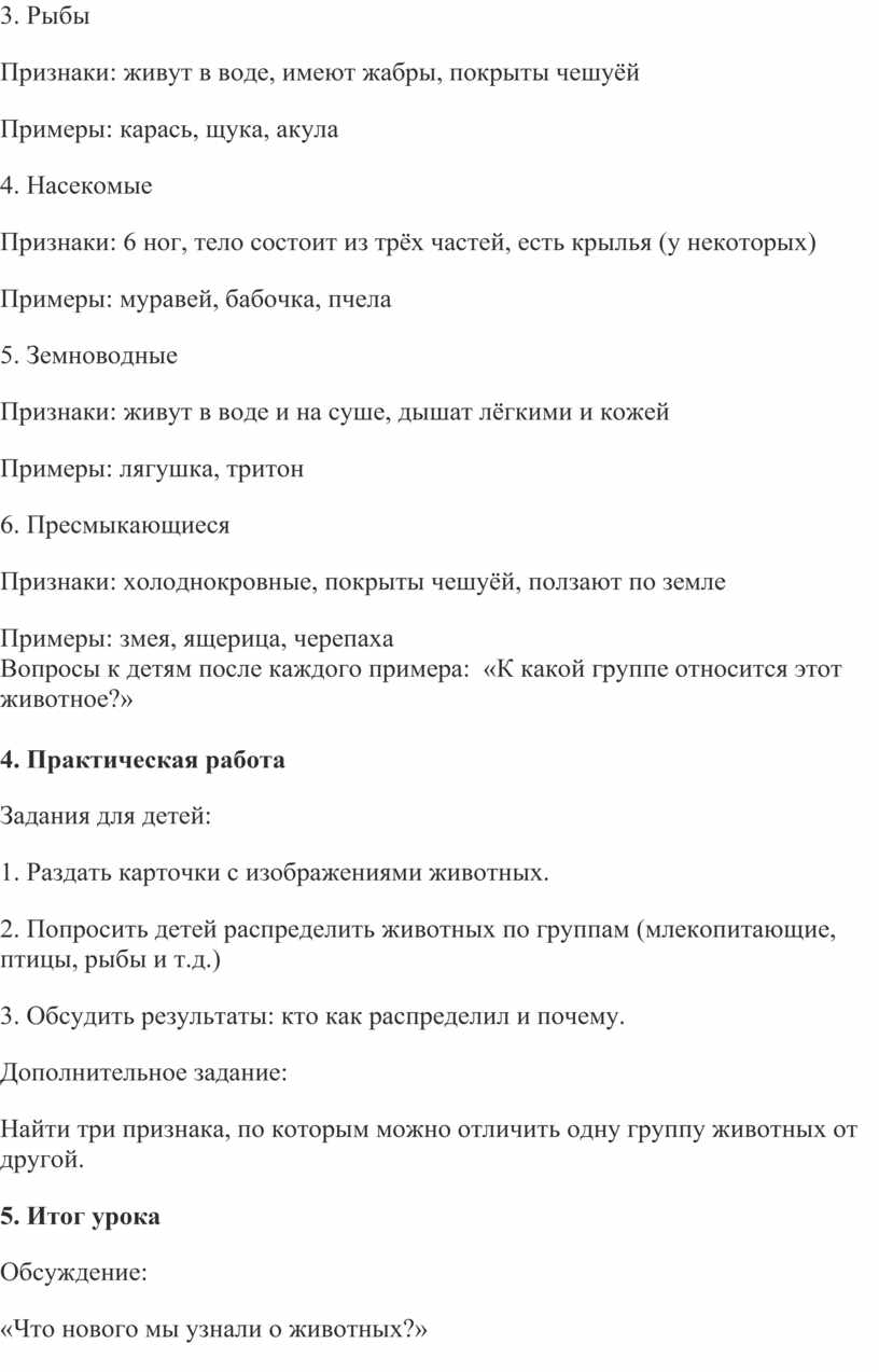 «Назовите три животных и скажите, к какой группе они относятся.»