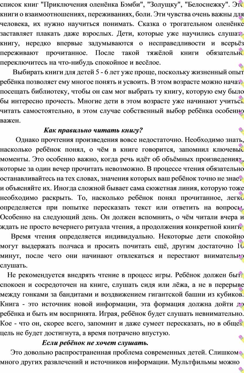 Не рекомендуется внедрять чтение в процесс игры. Ребёнок должен быть спокоен и сосредоточен на книге, слушать сидя или лёжа, а не в перерыве между гонками за бандитами и воздвижением гигантской башни из кубиков. Книга - это источник новой информации, эта формация должна дойти до ребёнка и быть им воспринята. Играя, ребёнок будет слушать невнимательно. Кое - что он, скорее всего, запомнит и даже сумеет пересказать, но в общем цель не будет достигнута, а время потрачено впустую.