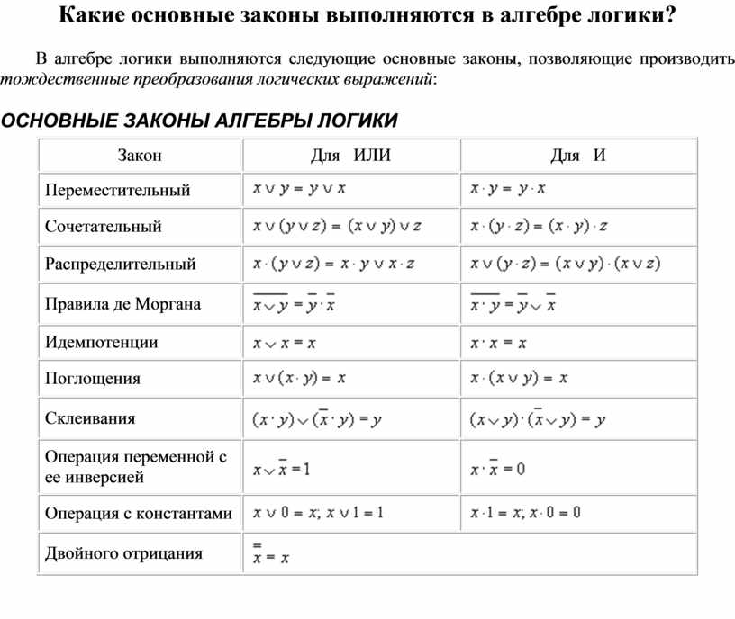 ОСНОВНЫЕ ЗАКОНЫ АЛГЕБРЫ ЛОГИКИ
