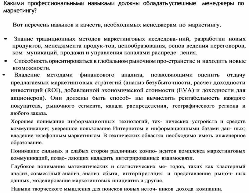 Какими профессиональными навыками должны обладать успешные менеджеры по маркетингу?