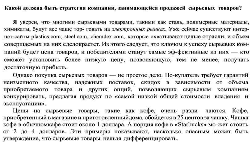Какой должна быть стратегия компании, занимающейся продажей сырьевых товаров?