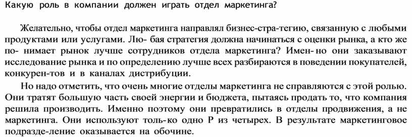 Какую роль в компании должен играть отдел маркетинга?