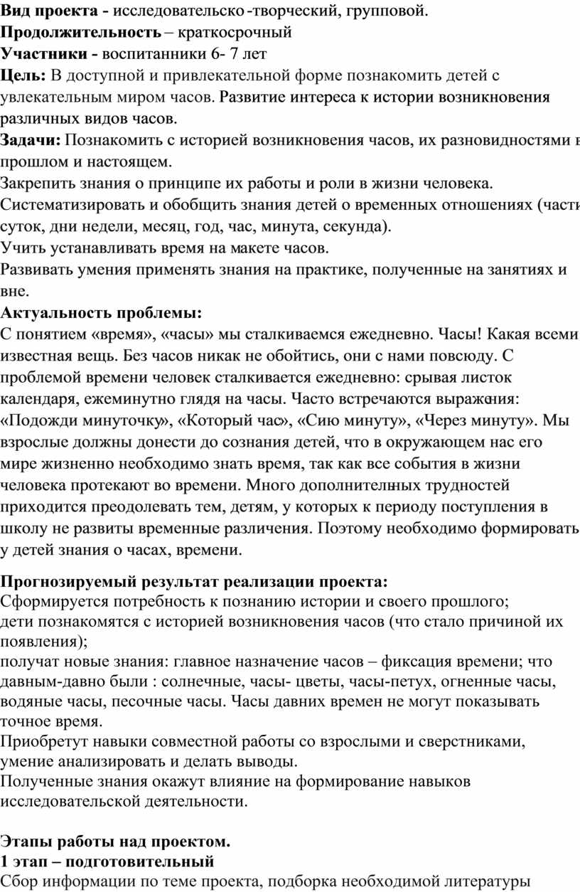 возникновения часов, их разновидностями в прошлом и настоящем.