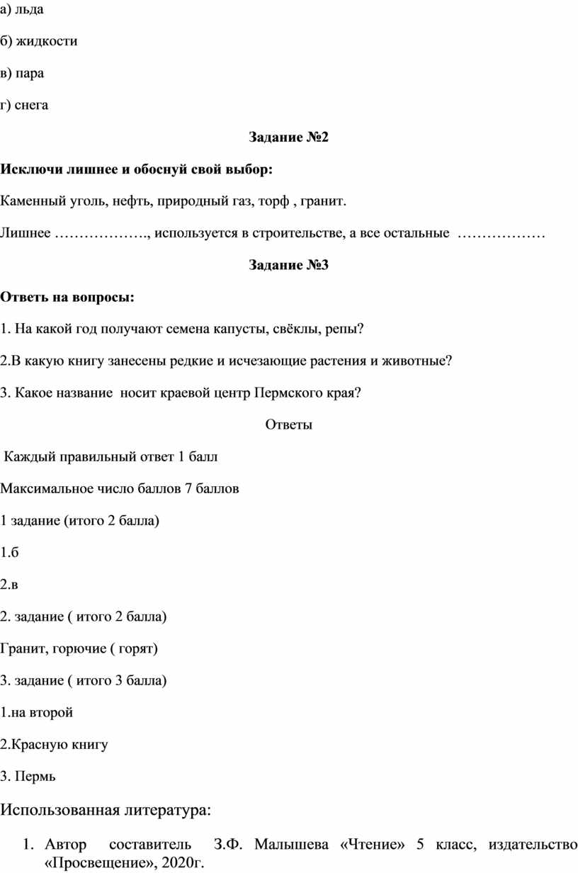 1. Автор составитель З.Ф. Малышева «Чтение» 5 класс, издательство «Просвещение», 2020г.