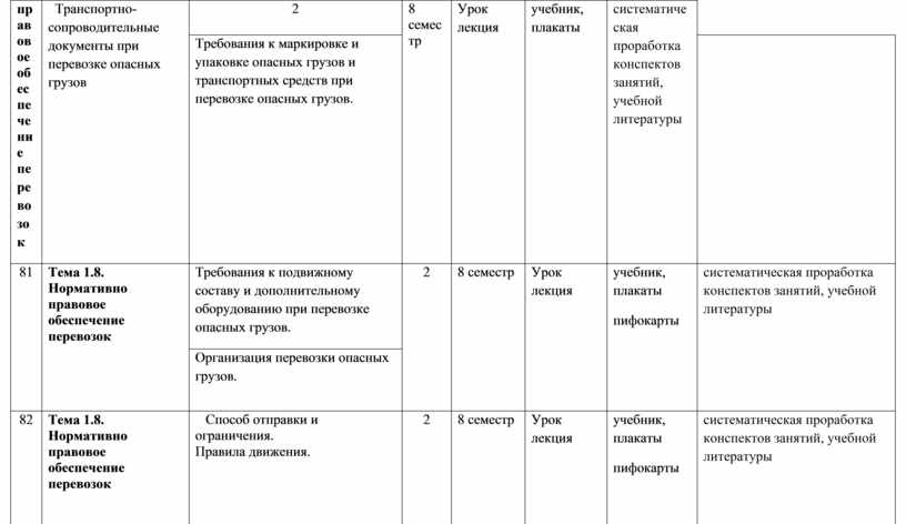Тема 1.8. Нормативно правовое обеспечение перевозок |