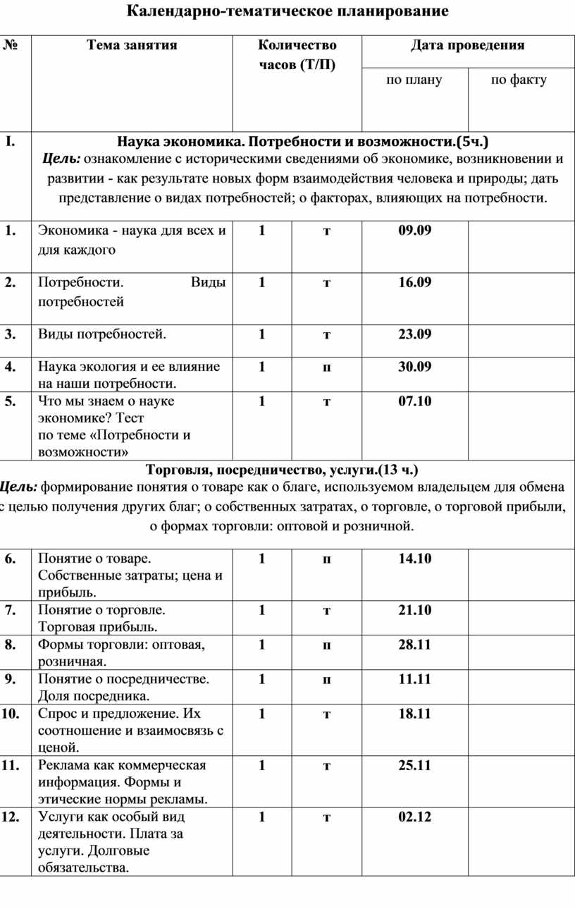 Наука экономика. Потребности и возможности.(5ч.) Цель: ознакомление с историческими сведениями об экономике, возникновении и развитии - как результате новых форм взаимодействия человека и природы; дать представление о видах потребностей; о факторах, влияющих на потребности. |