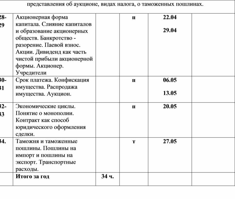 Банкротство(7ч.) Цель: ознакомление с понятием «банкротство», «акционер», «налог», формирование представления об аукционе, видах налога, о таможенных пошлинах. |