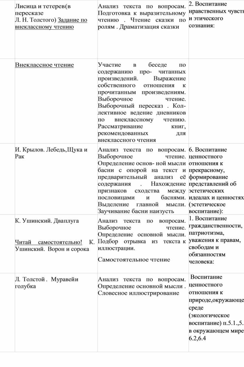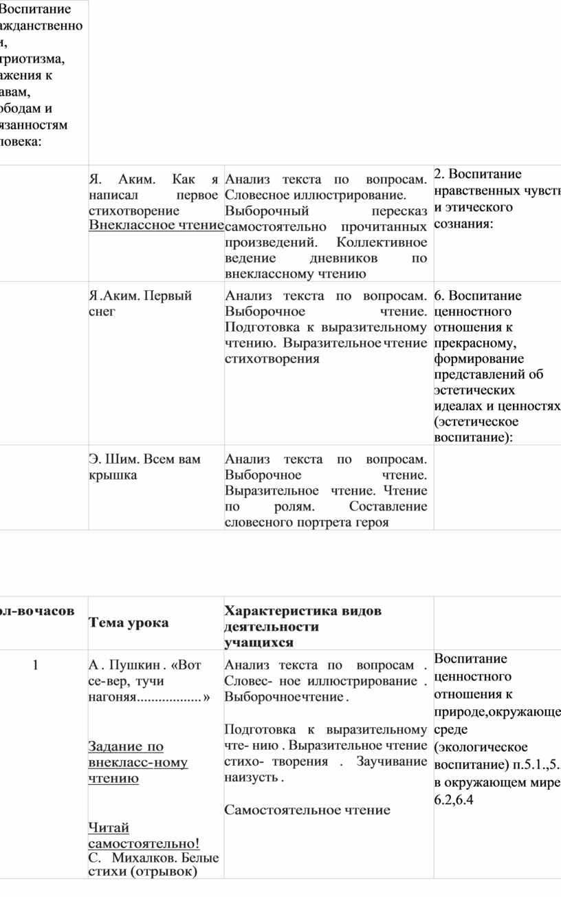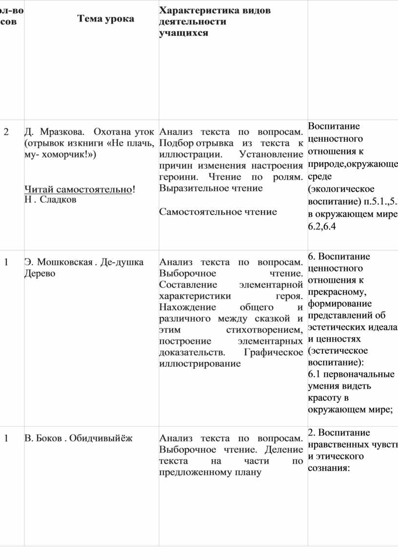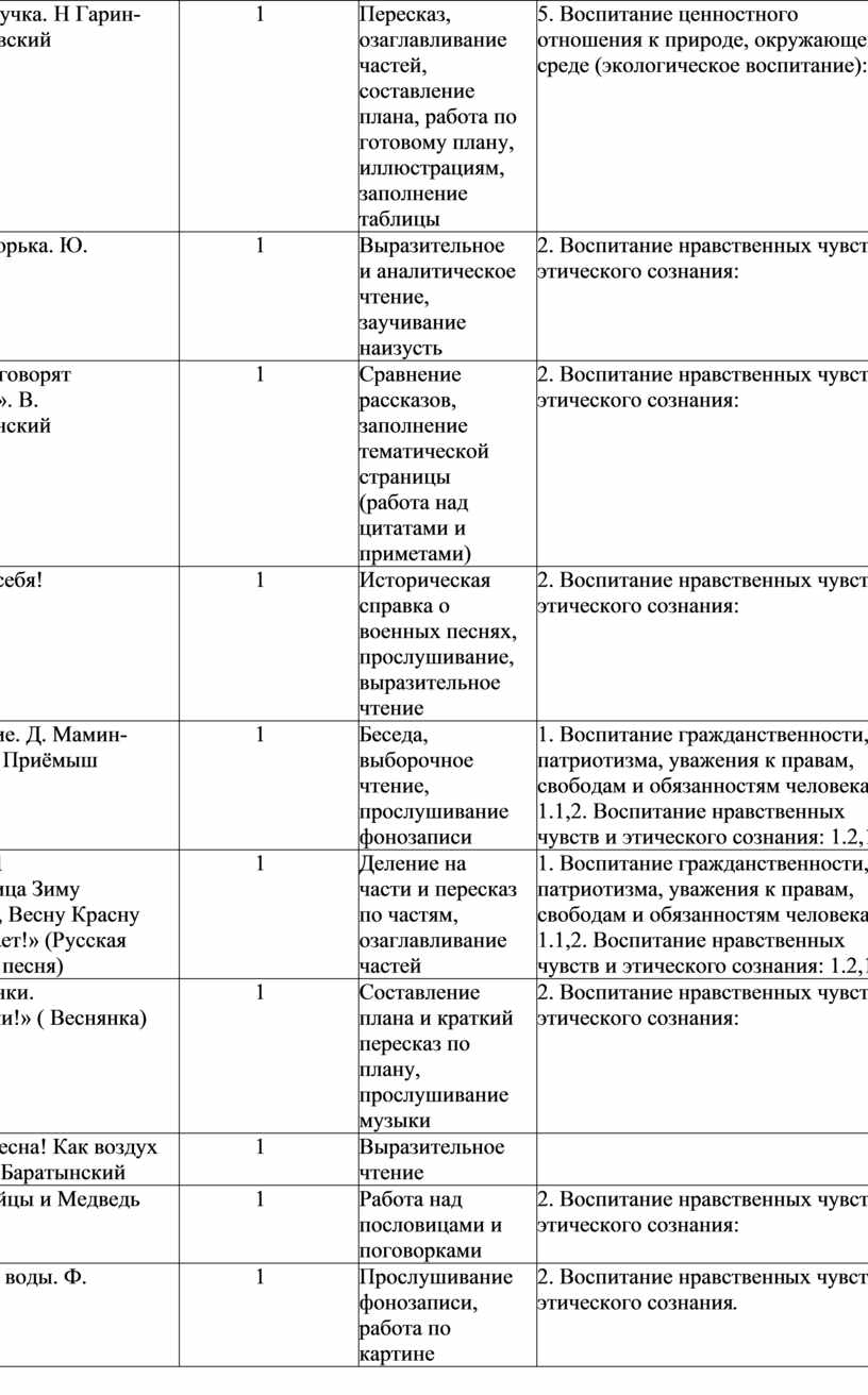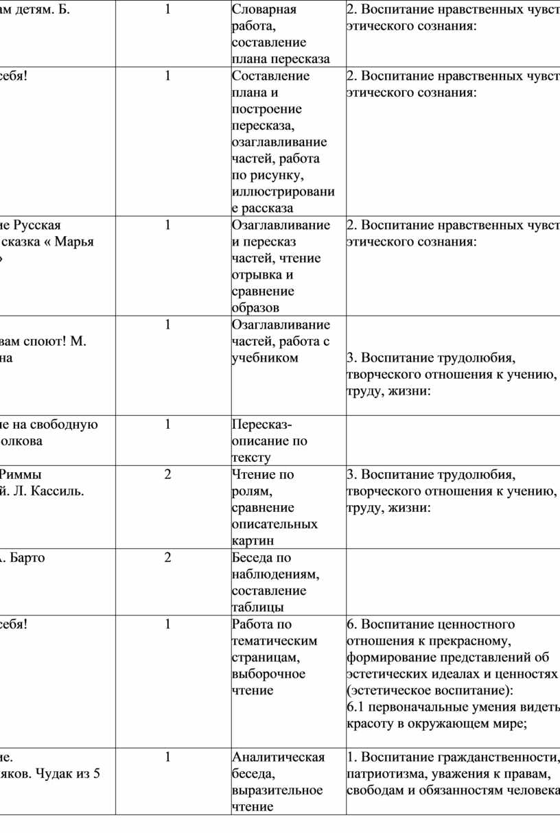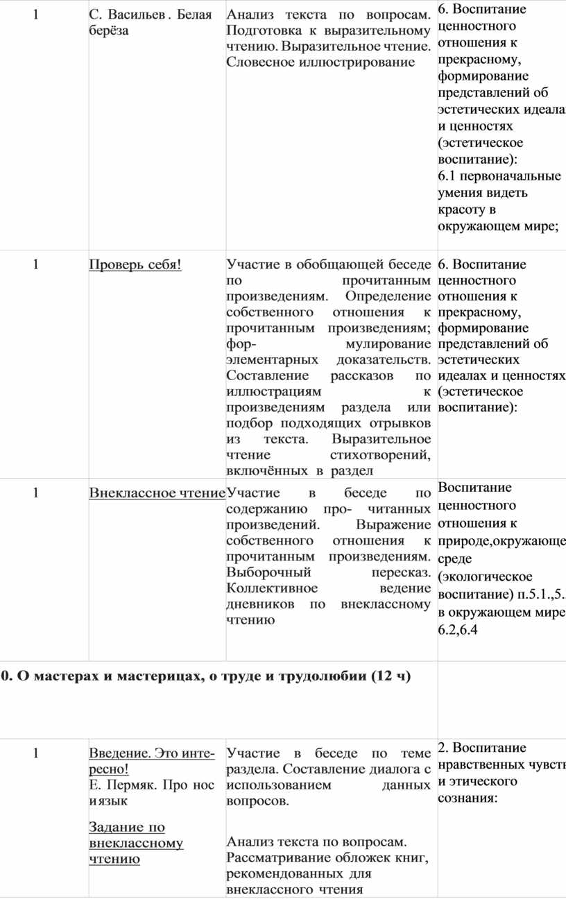 3.Воспитание трудолюбия, творческого отношения к учению, труду,жизни: п.3.4.,3.7. Воспитание ценностного отношения к природе,окружающей среде (экологическое воспитание) п.5.1.,5.3 в окружающем мире; 6.2,6.4