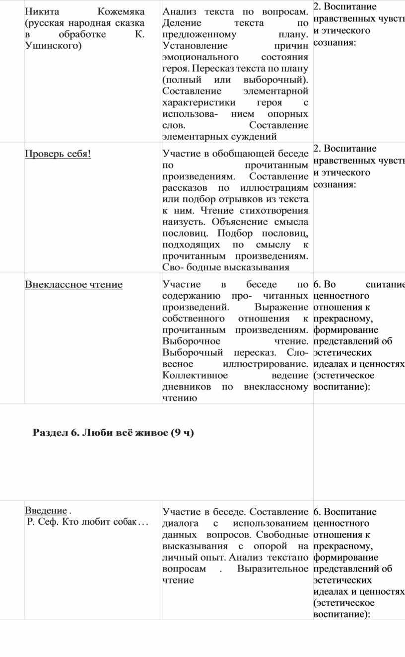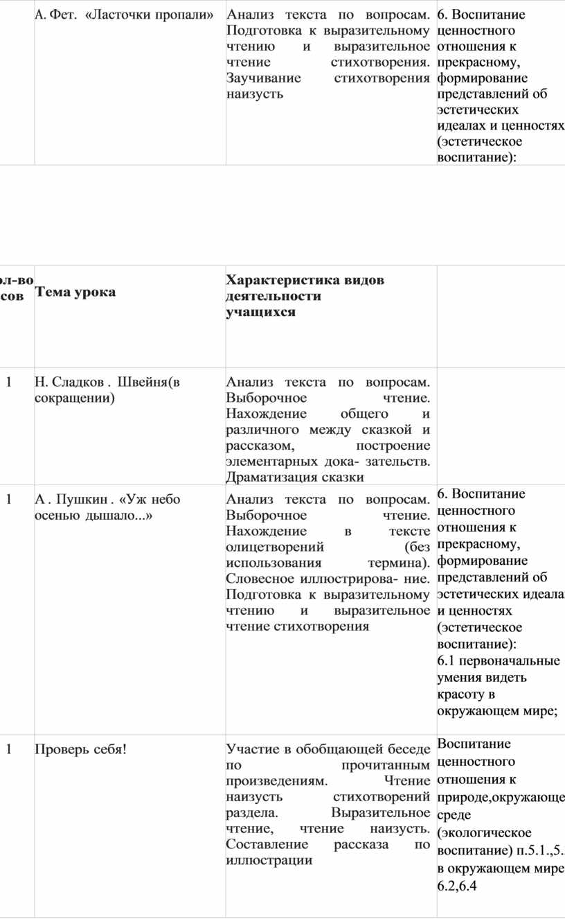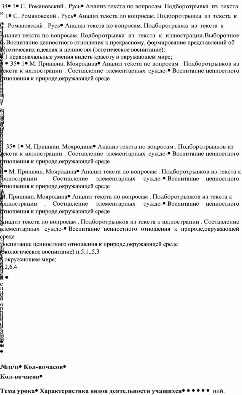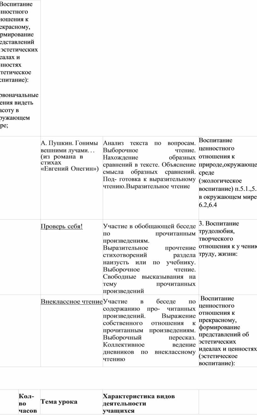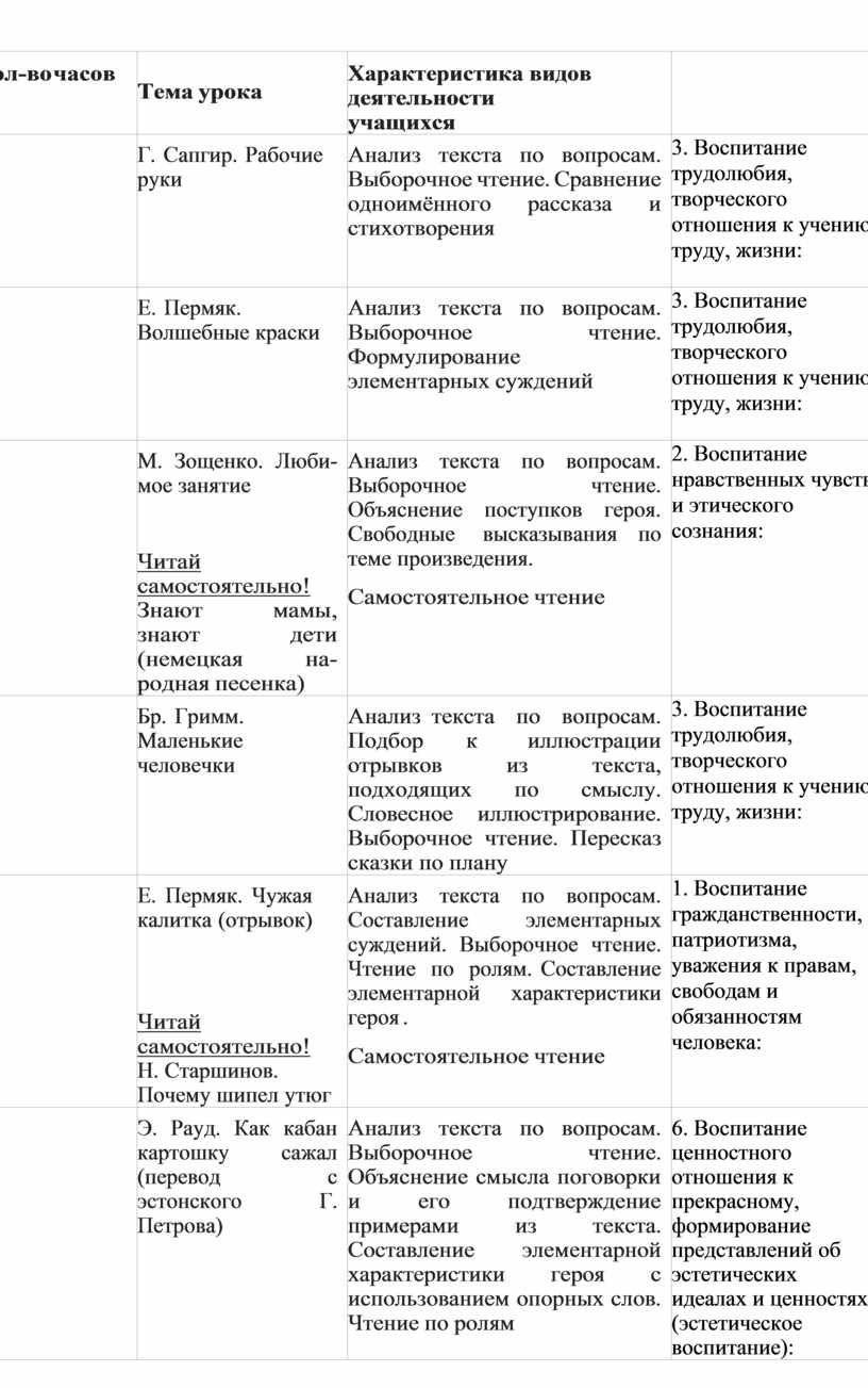 3.Воспитание трудолюбия, творческого отношения к учению, труду,жизни: п.3.4.,3.7. Воспитание ценностного отношения к природе,окружающей среде (экологическое воспитание) п.5.1.,5.3 в окружающем мире; 6.2,6.4