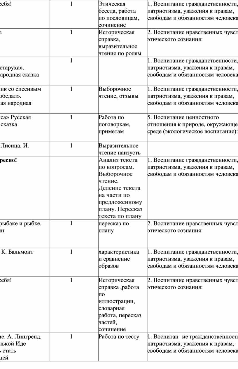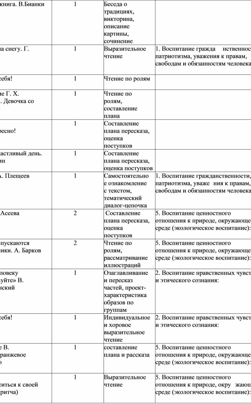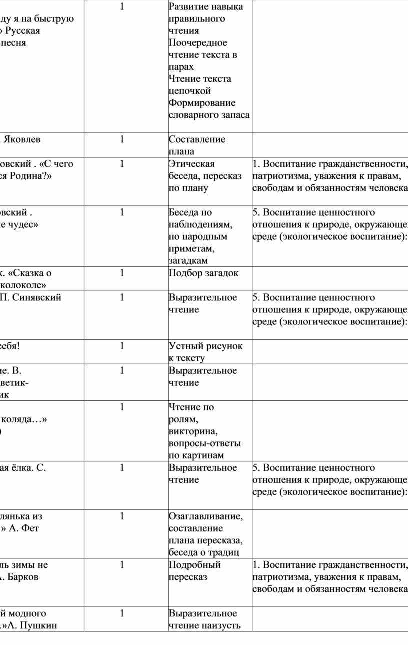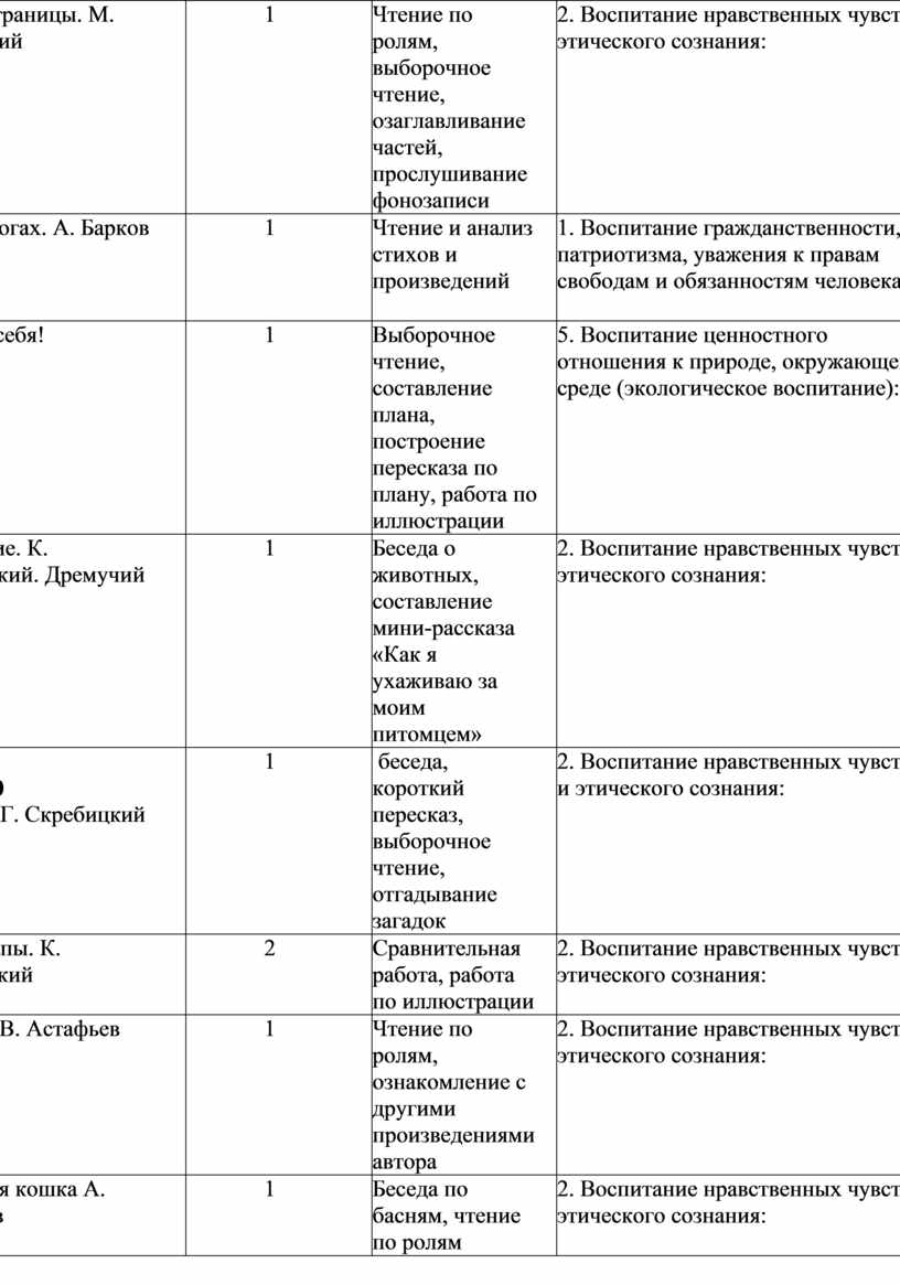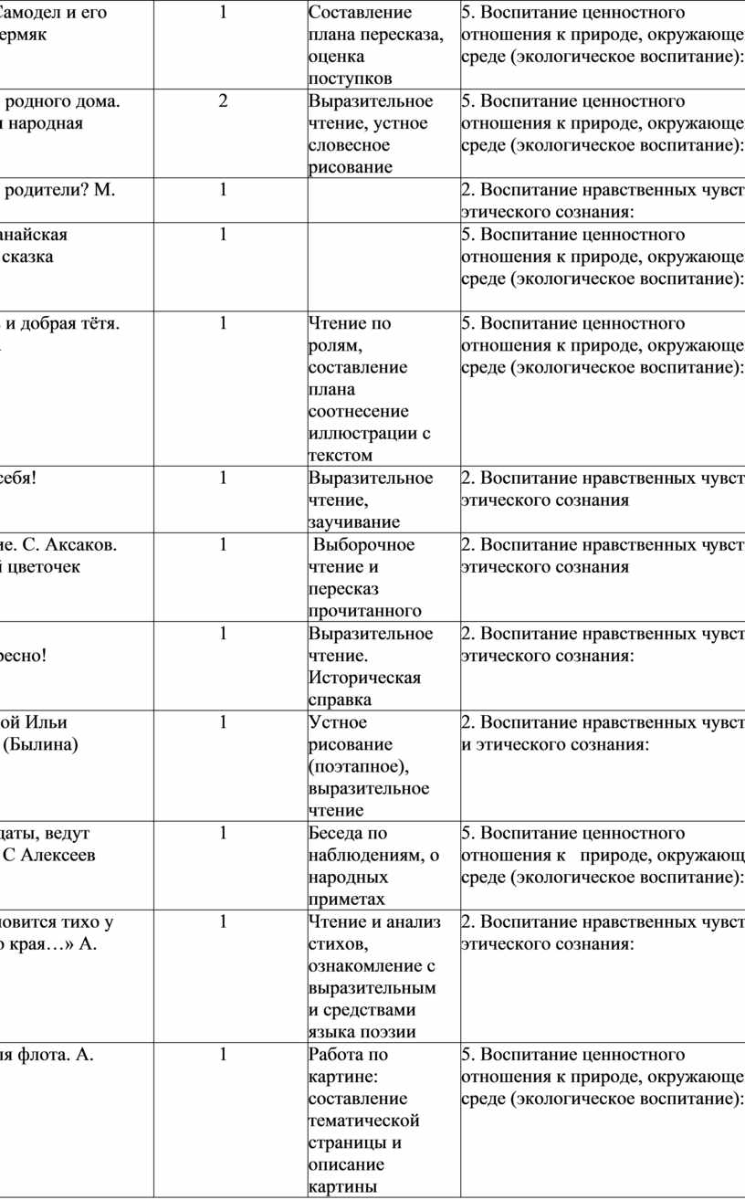 народного творчества, небольшие рассказы и стихотворения русских и зарубежных авторов о природе родного края, о жизни детей и взрослых, о труде, о нравственных и этических нормах поведения.