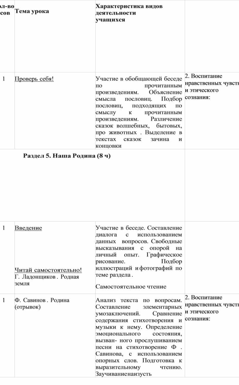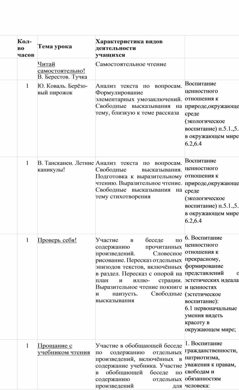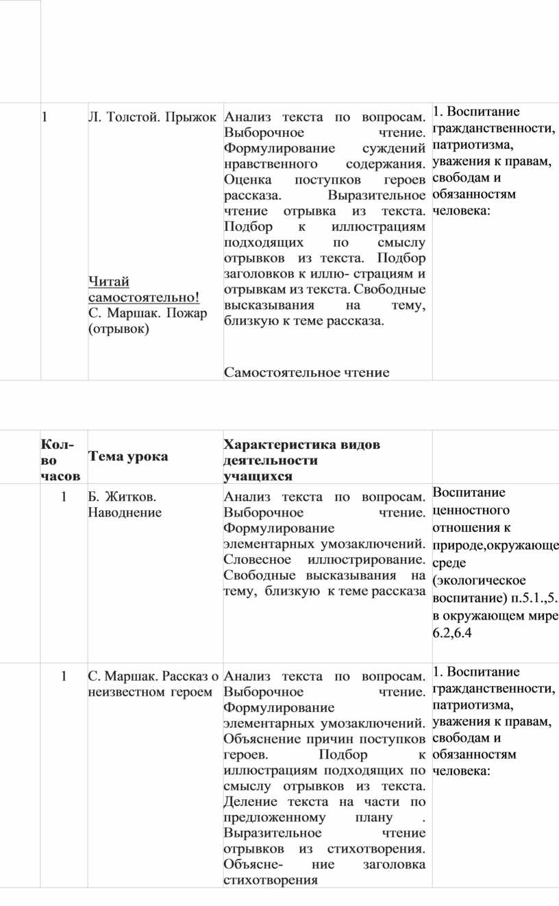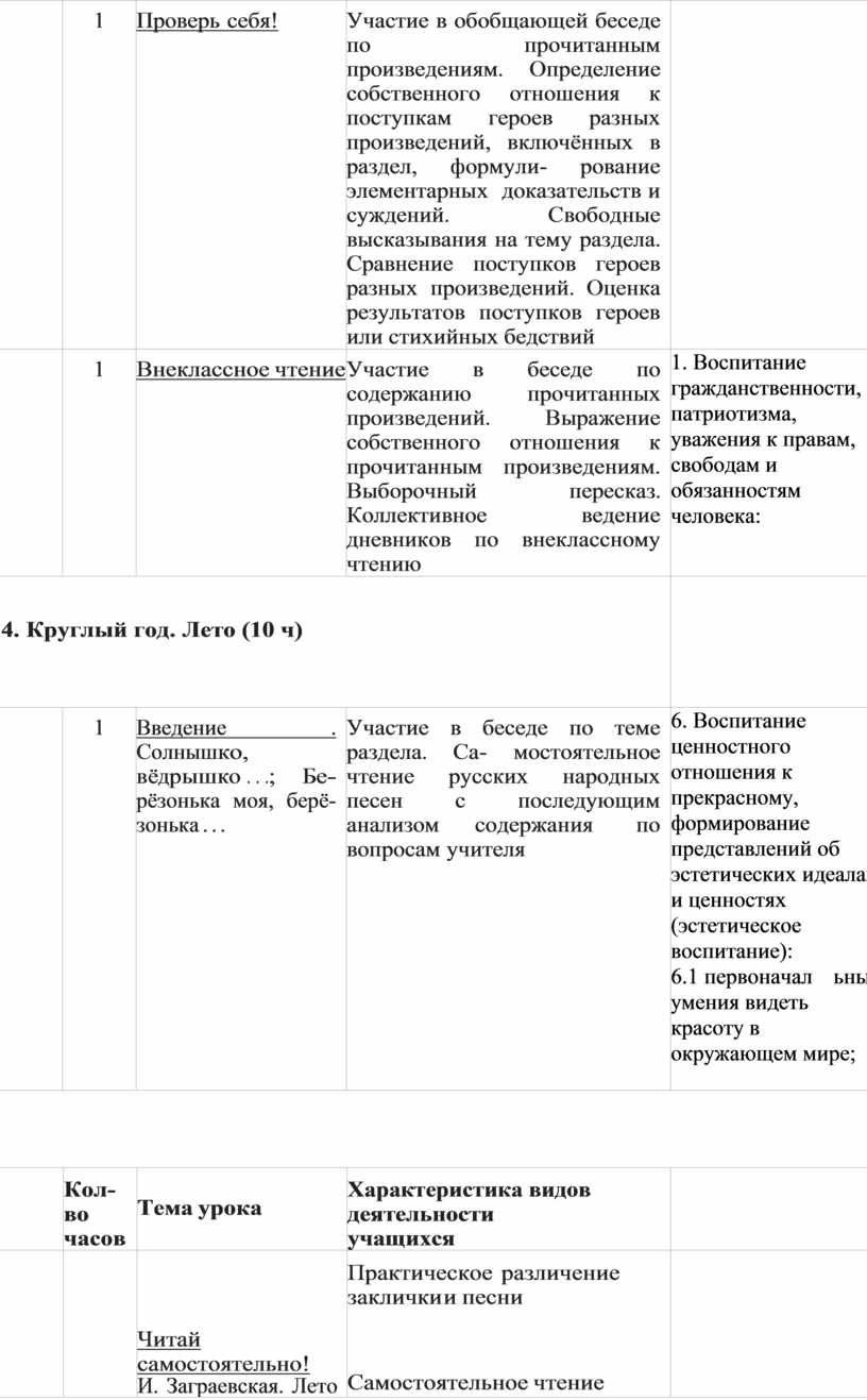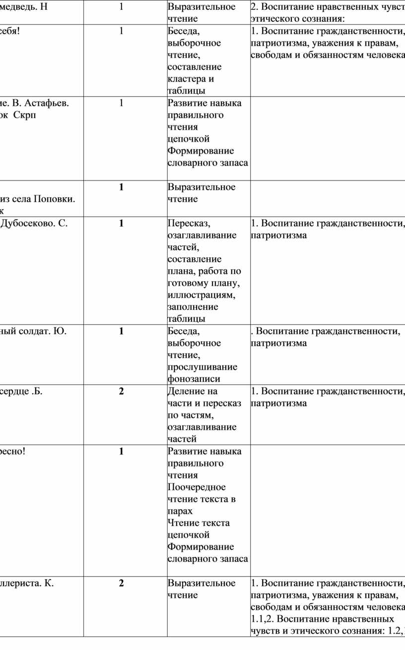 народного творчества, небольшие рассказы и стихотворения русских и зарубежных авторов о природе родного края, о жизни детей и взрослых, о труде, о нравственных и этических нормах поведения.