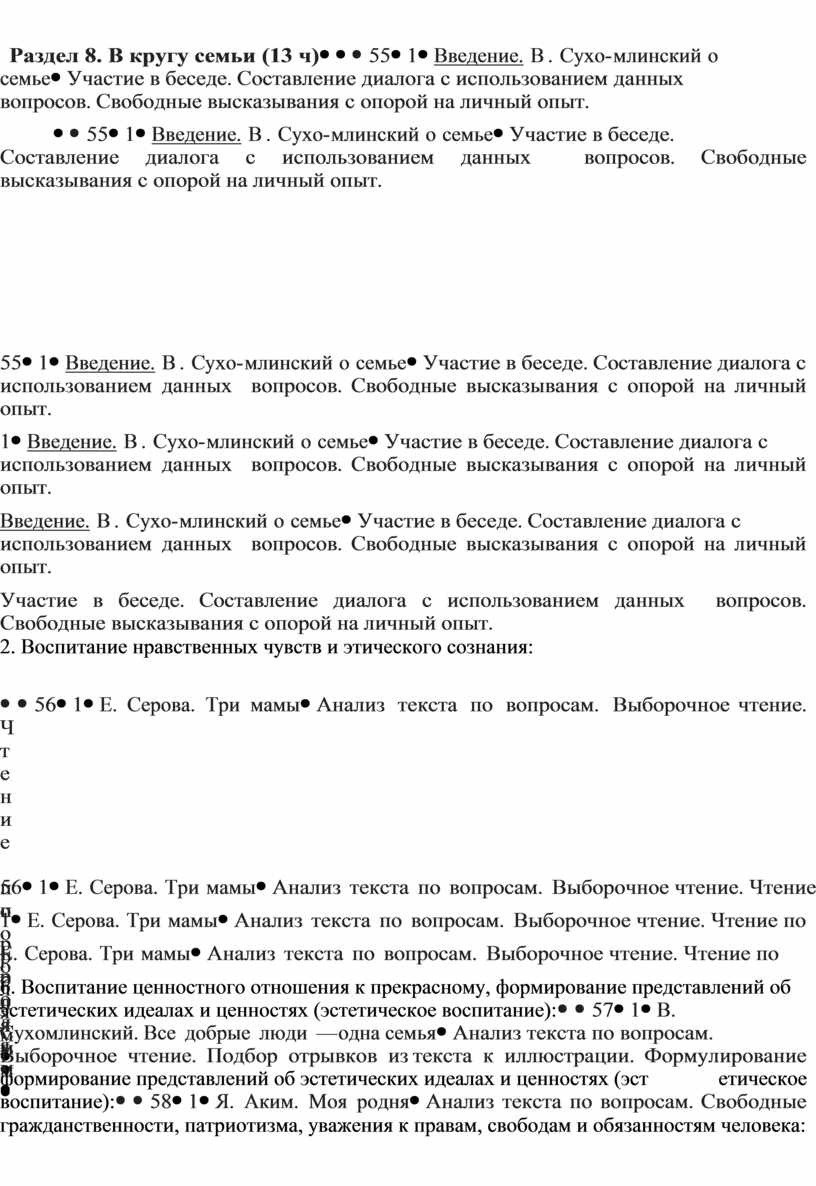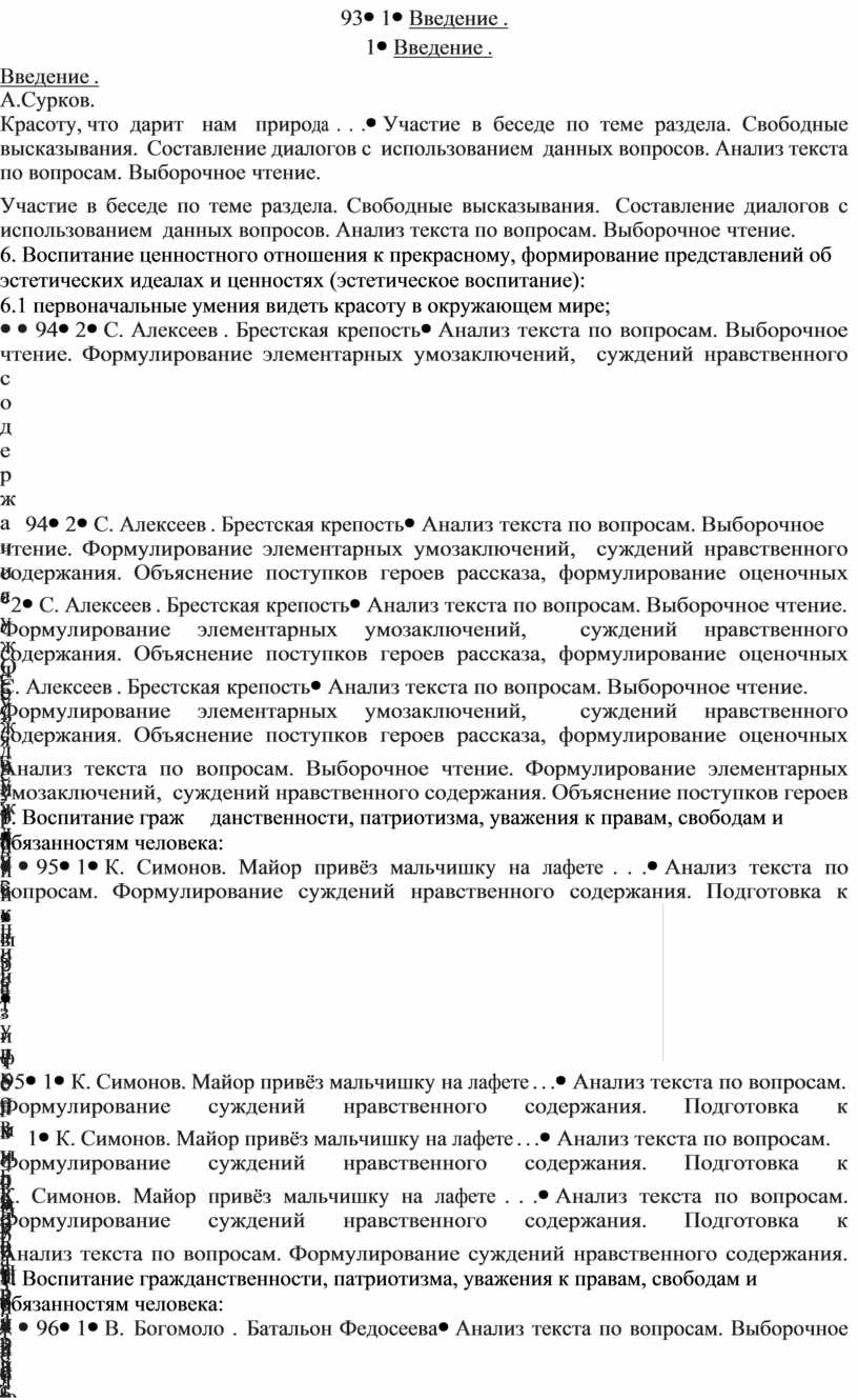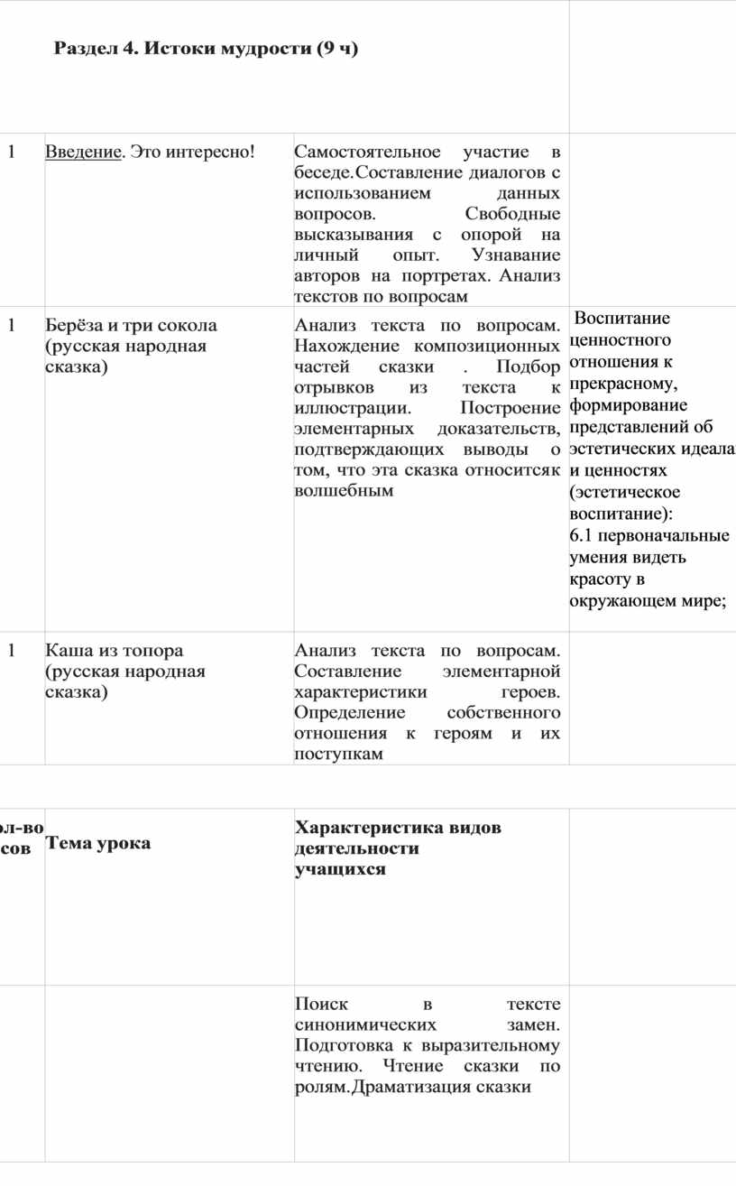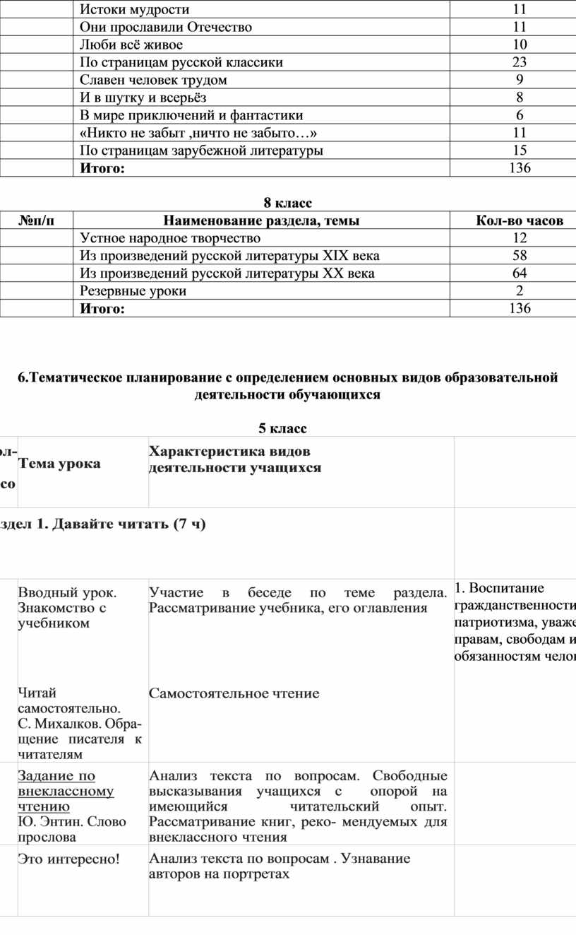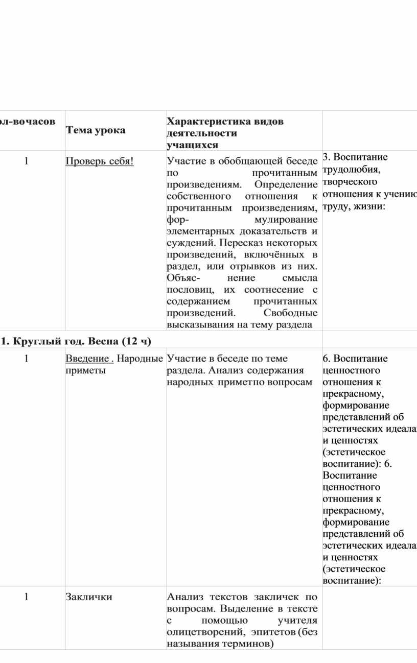 народного творчества, небольшие рассказы и стихотворения русских и зарубежных авторов о природе родного края, о жизни детей и взрослых, о труде, о нравственных и этических нормах поведения.