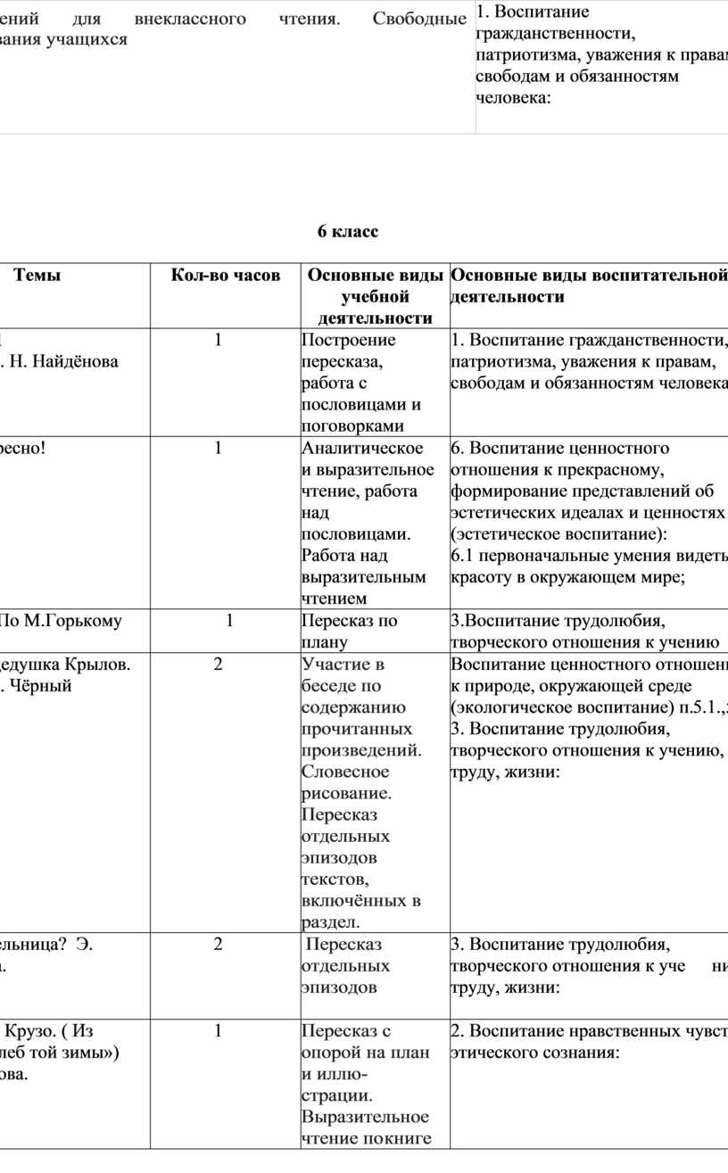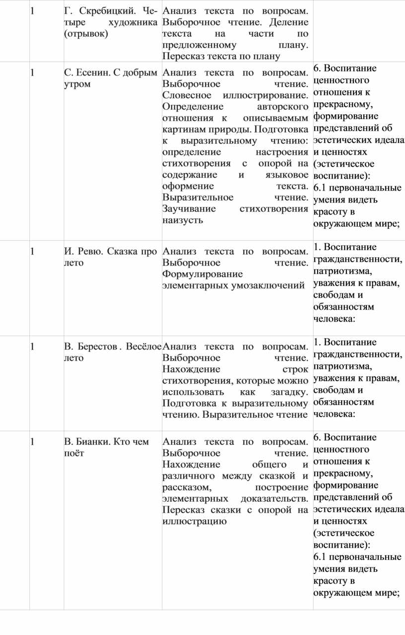 6. Воспитание ценностного отношения к прекрасному, формирование представлений об эстетических идеалах и ценностях (эстетическое воспитание): 6.1,6.4 |
