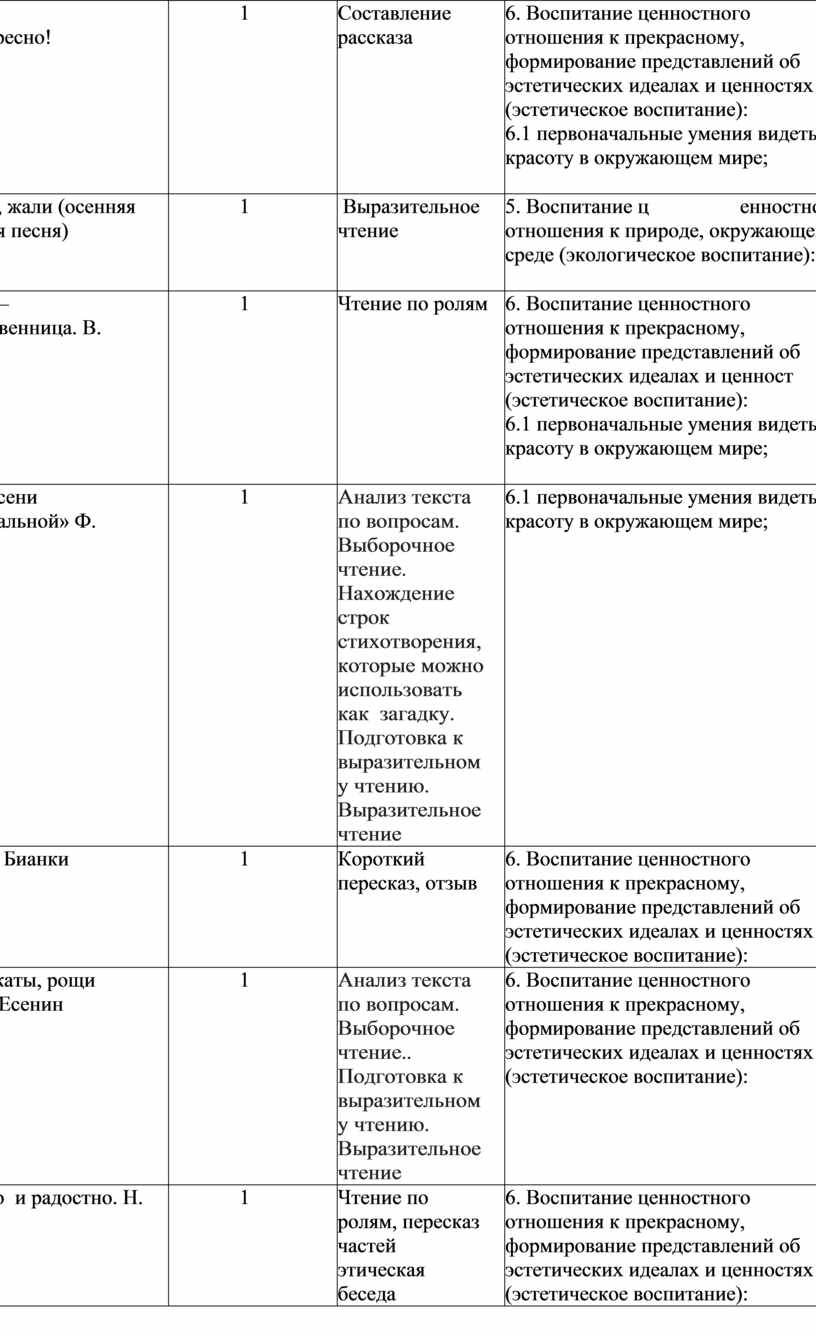 6. Воспитание ценностного отношения к прекрасному, формирование представлений об эстетических идеалах и ценностях (эстетическое воспитание): 6.1 первоначальные умения видеть красоту