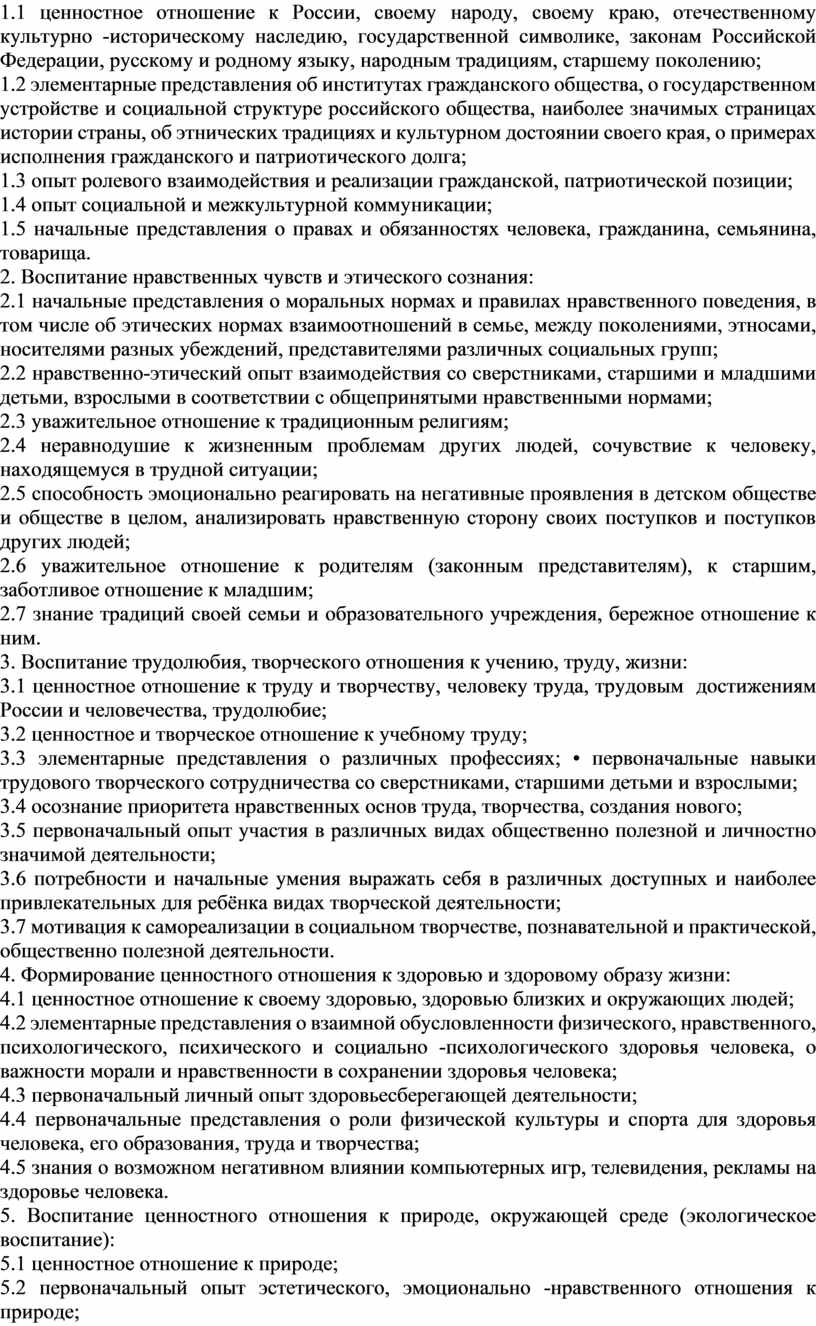 1.1 ценностное отношение к России, своему народу, своему краю, отечественному культурно -историческому наследию, государственной символике, законам Российской Федерации, русскому и родному языку, народным традициям, старшему поколению;
