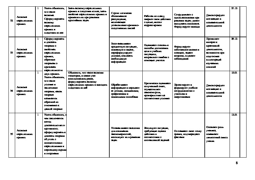 Календарно-тематическое планирование уроков геометрии в 7-ых классах