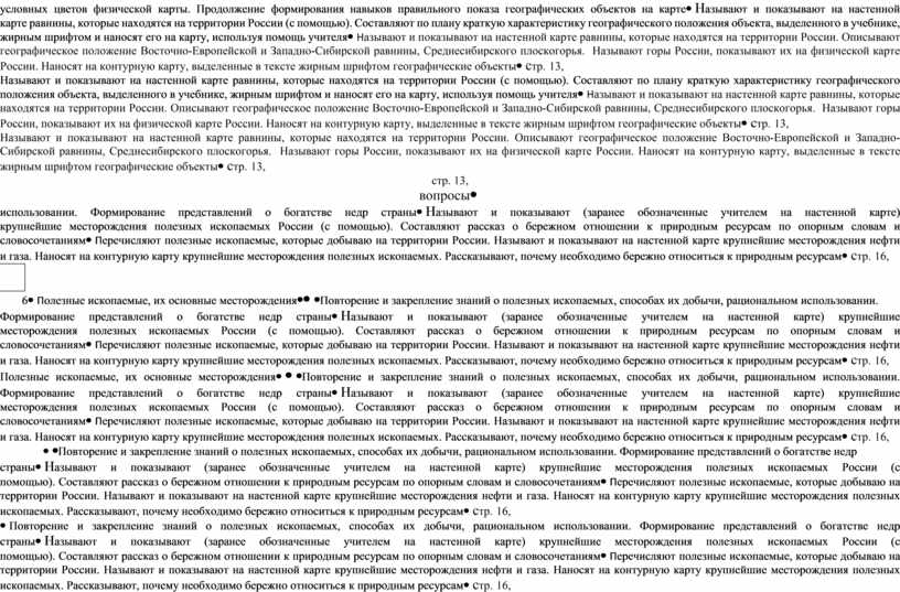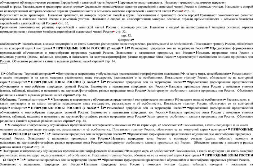 Продолжение формирования представлений о географическом положении России, обширности ее территории. Знакомство с названиями экономических районов Европейской и азиатской частей РФ. Продолжение формирования навыков самостоятельной работы при выполнении упражнений в тетради на печатной основе |