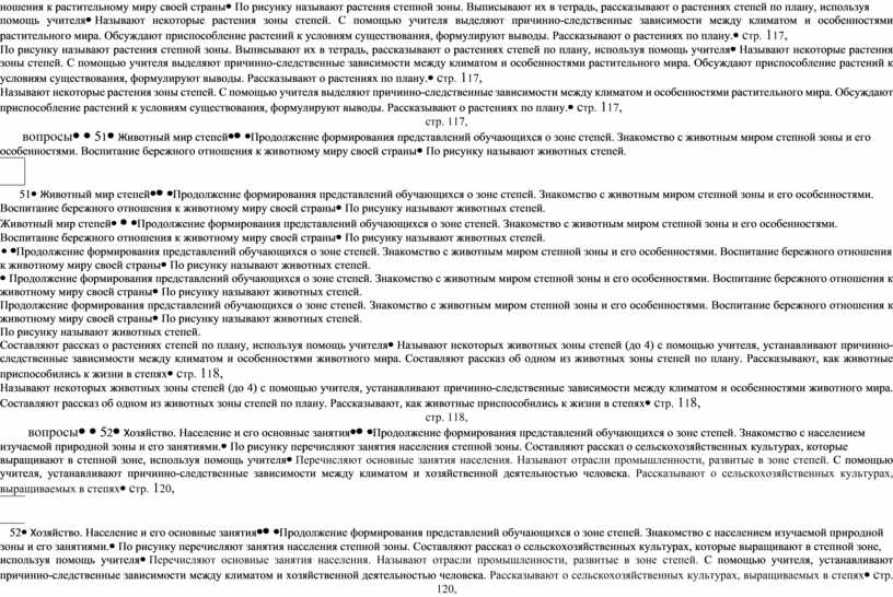 Продолжить формирование представлений обучающихся о зоне степей. Знакомство с крупными городами. Продолжение формирования навыков работы обучающихся с настенной картой |