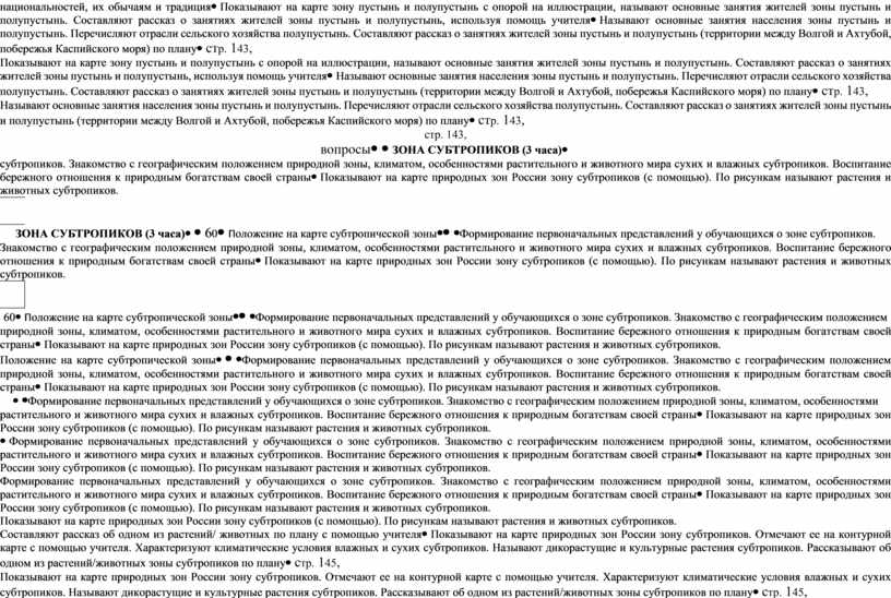 Продолжение формирования представлений у обучающихся о зоне пустынь и полупустынь. Знакомство школьников с населением и его основными занятиями. Воспитание уважительного отношения к людям других национальностей, их обычаям и традиция |