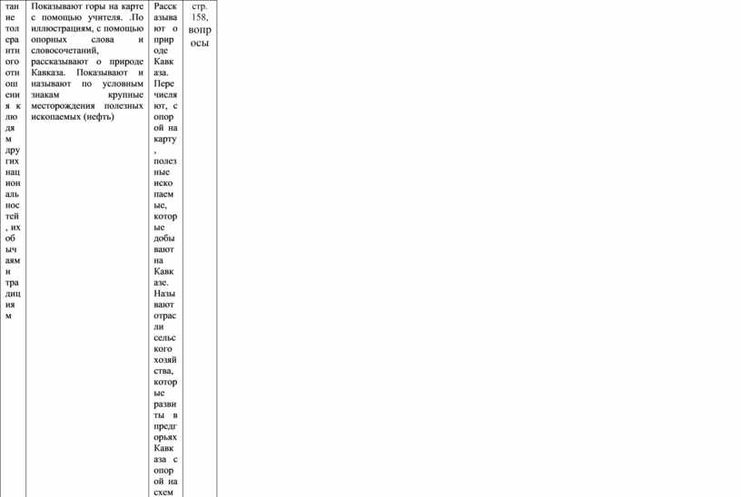Формирование представлений у обучающихся о высотной поясности. Знакомство школьников с Кавказскими горами, природой, населением, хозяйством. Воспитание толерантного отношения к людям других национальностей, их обычаям и традициям |