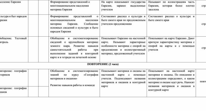 Обобщение и систематизирование сведений о крупнейшем материке земного шара. Развитие навыков самостоятельной работы при выполнении заданий в контурной карте и в тетради на печатной основе |