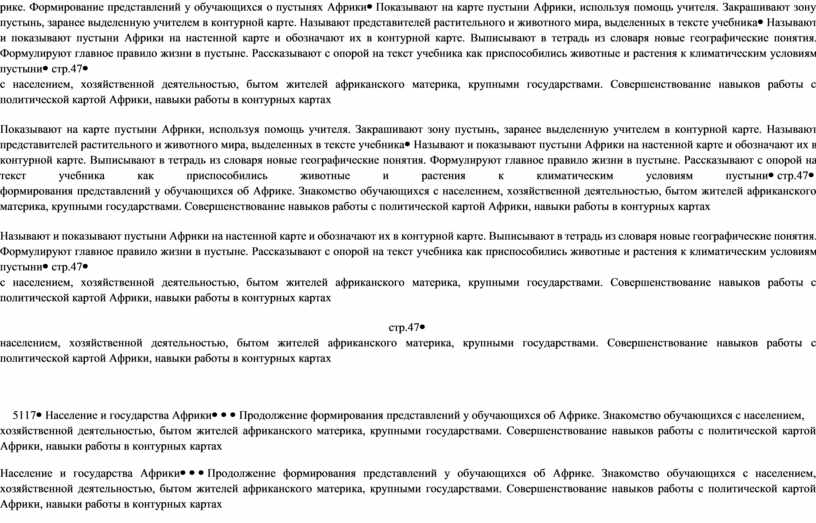 Знакомство с природными зонами Африки. Формирование представлений у обучающихся о растительности саванн. Совершенствование навыков самостоятельной работы при выполнении задании в тетради |