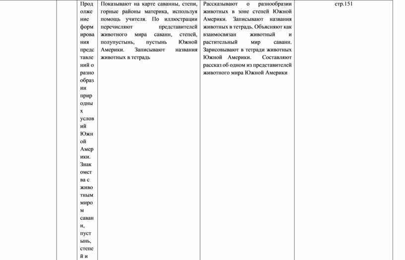 Продолжение формирования представлений о разнообразии природных условий Южной Америки. Знакомства с животным миром саванн, пустынь, степей и гор Южной Америки |