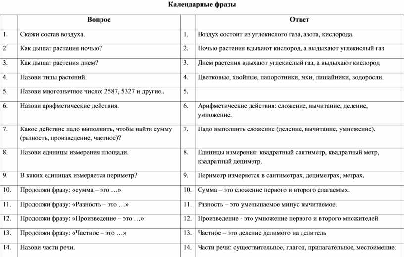 Календарные фразы