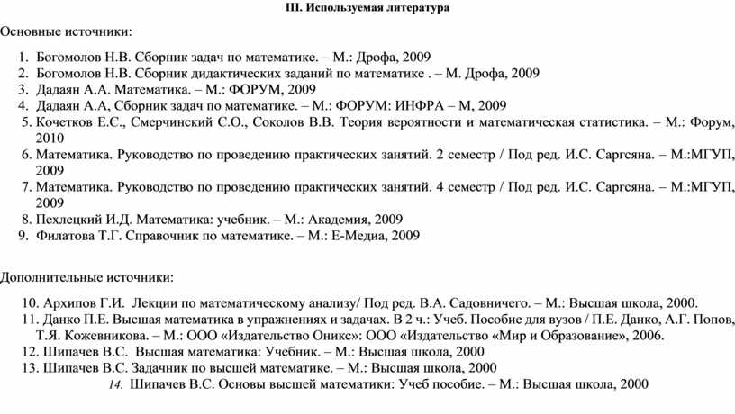 8. Пехлецкий И.Д. Математика: учебник. – М.: Академия, 2009