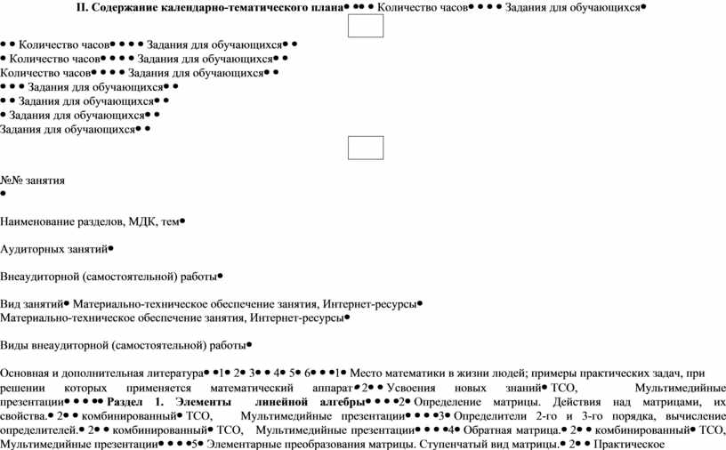 II. Содержание календарно-тематического плана |