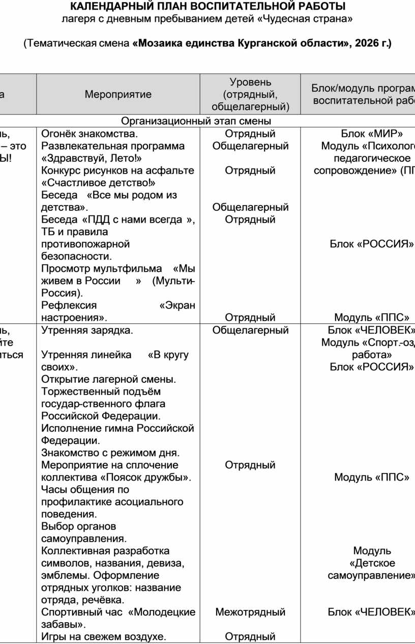 (Тематическая смена «Мозаика единства Курганской области», 2026 г.)