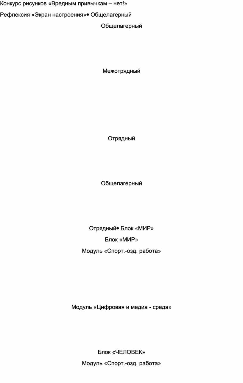 Блок «МИР» Модуль «Спорт.-озд. работа»