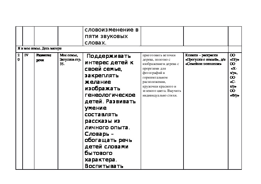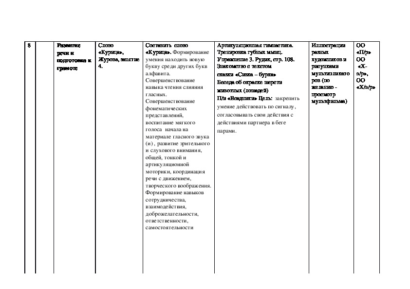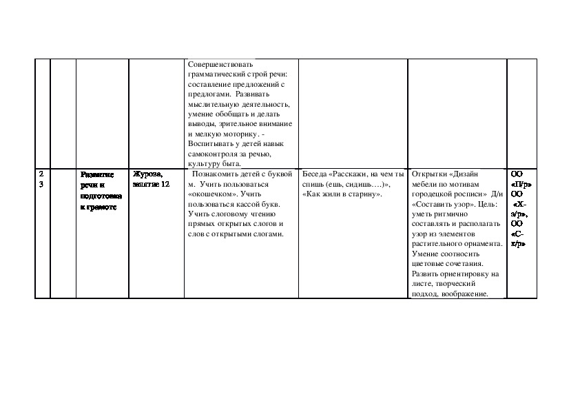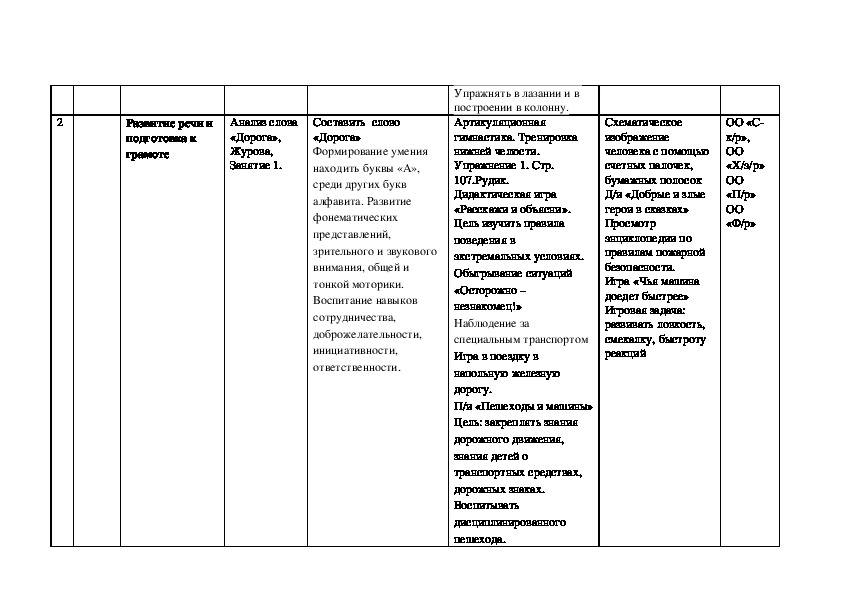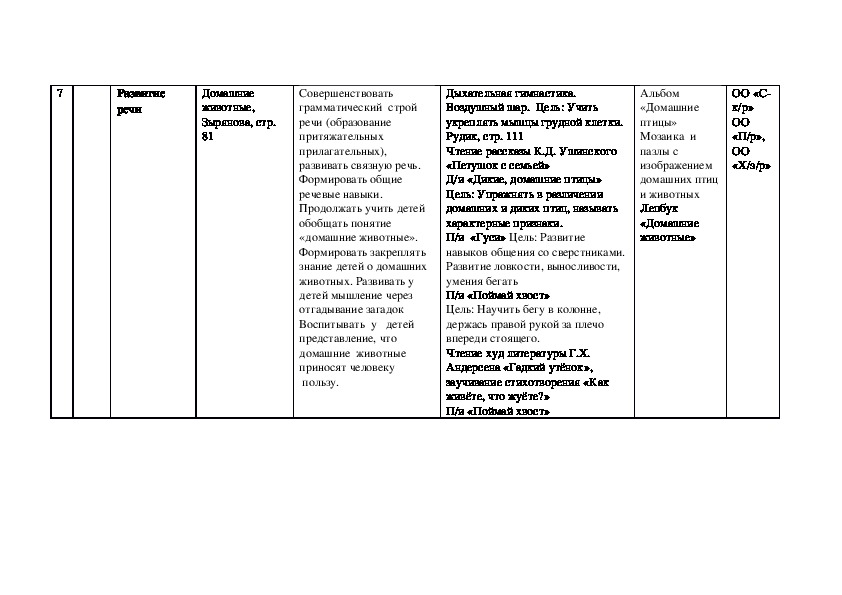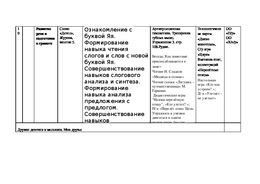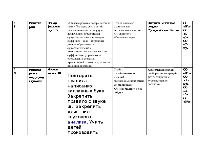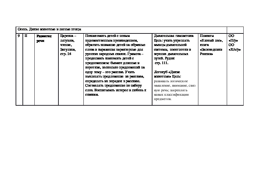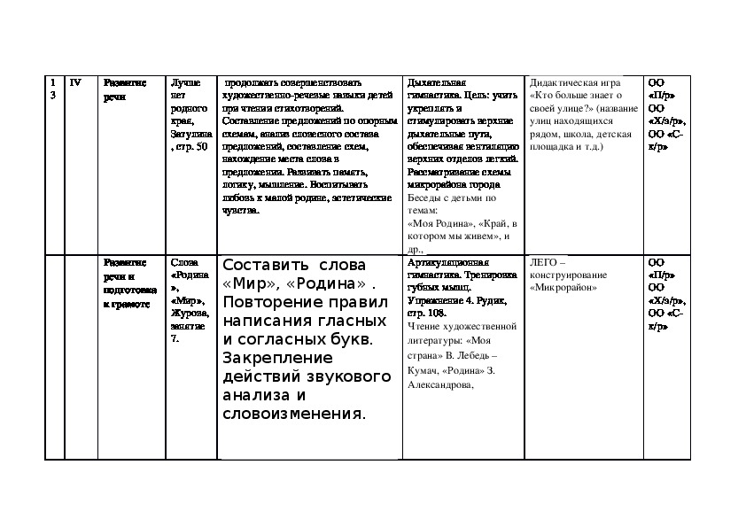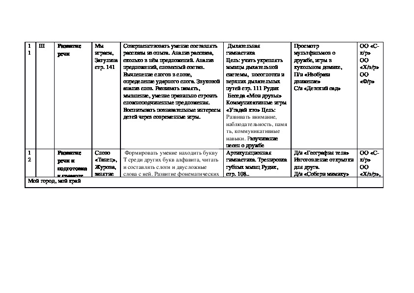 Календарно тематическое планирование образовательное области «Речевое развитие» подготовительная группа