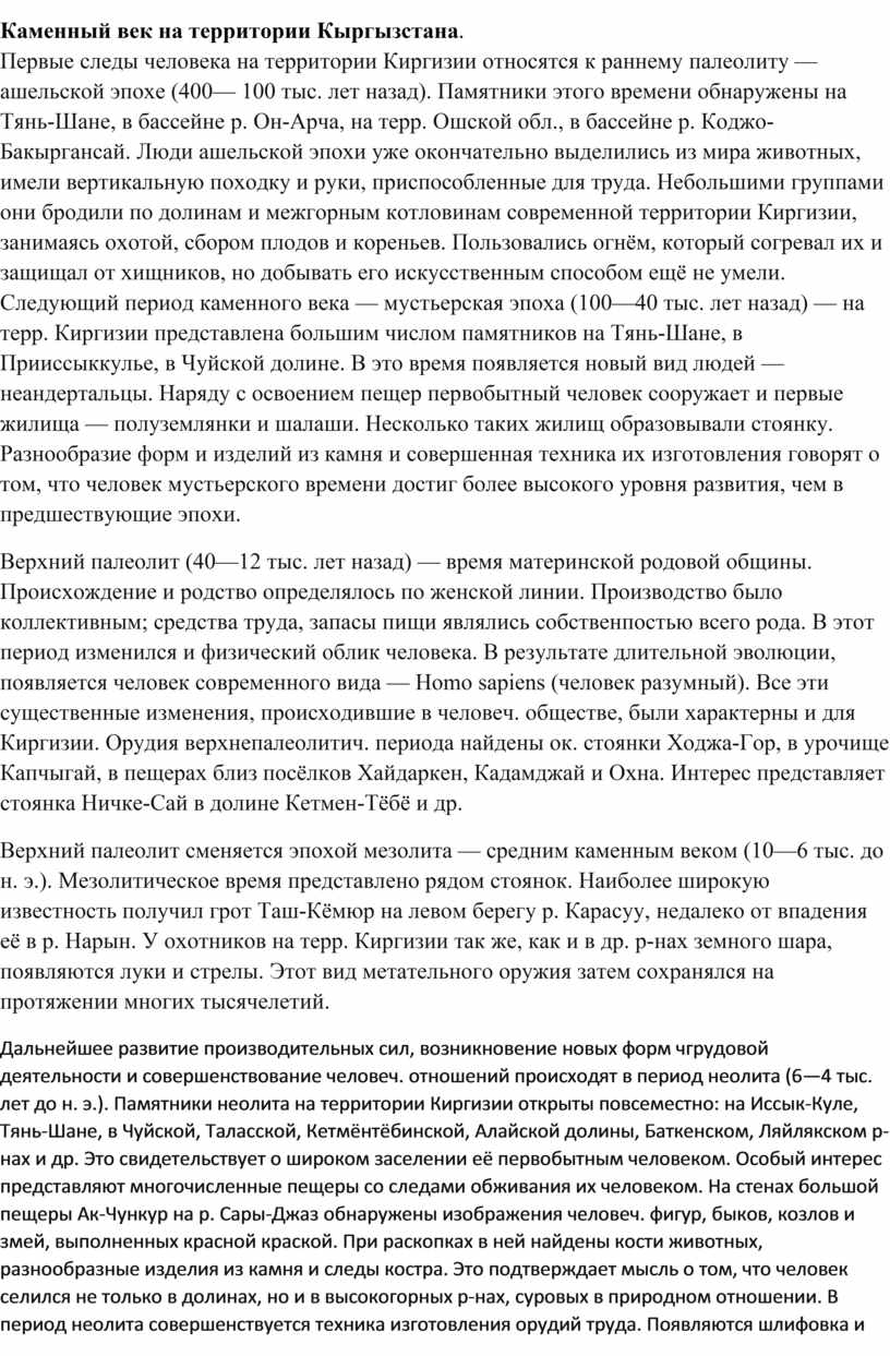 1. Люди на территории Кыргызстана проживают с какого периода?