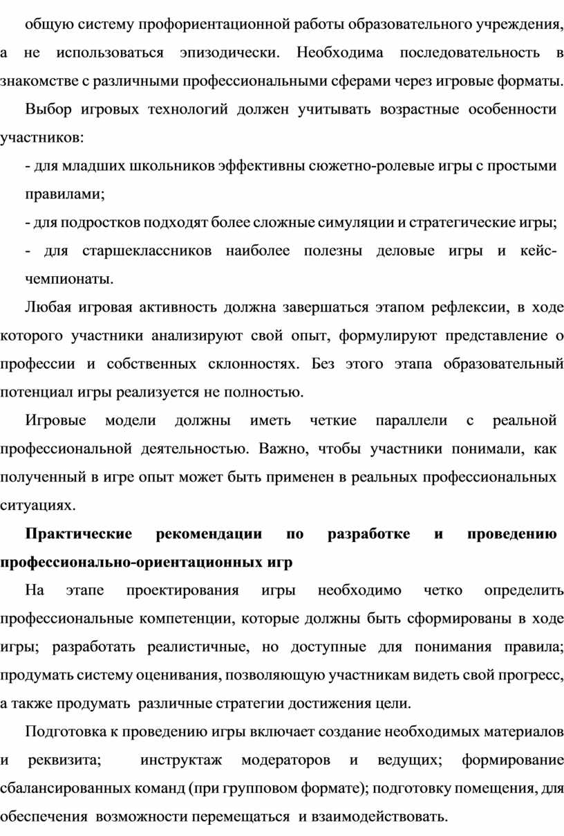 Практические рекомендации по разработке и проведению профессионально-ориентационных игр