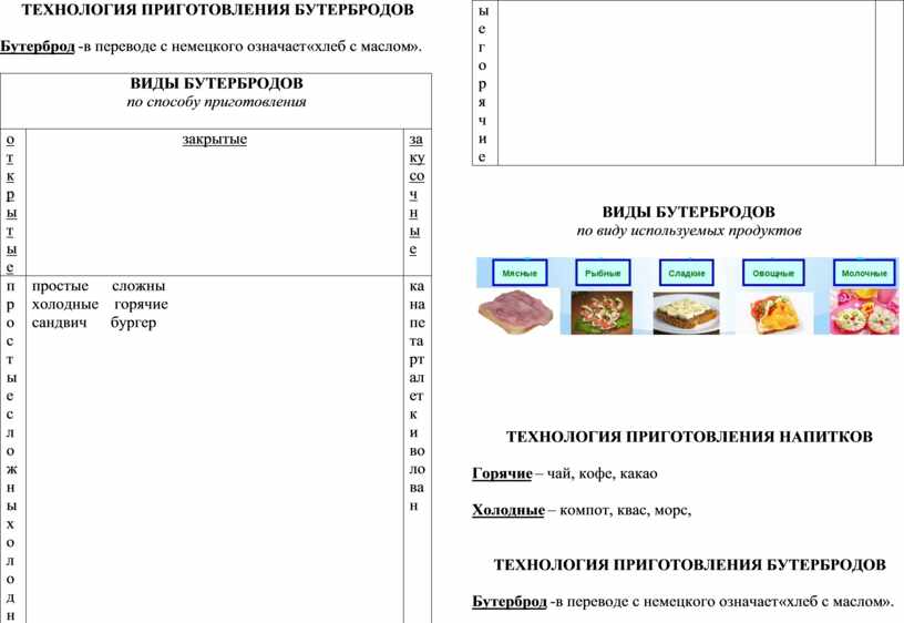 ТЕХНОЛОГИЯ ПРИГОТОВЛЕНИЯ БУТЕРБРОДОВ