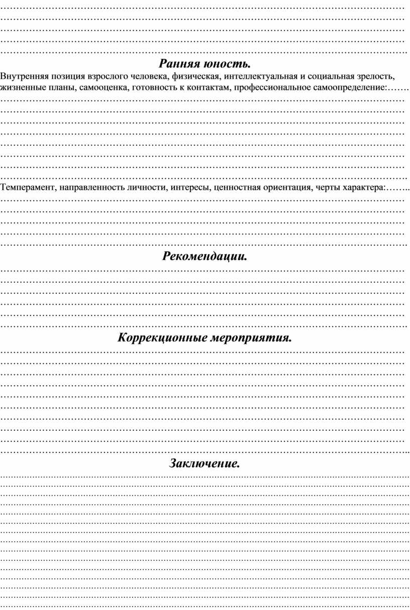Внутренняя позиция взрослого человека, физическая, интеллектуальная и социальная зрелость, жизненные планы, самооценка, готовность к контактам, профессиональное самоопределение:…….