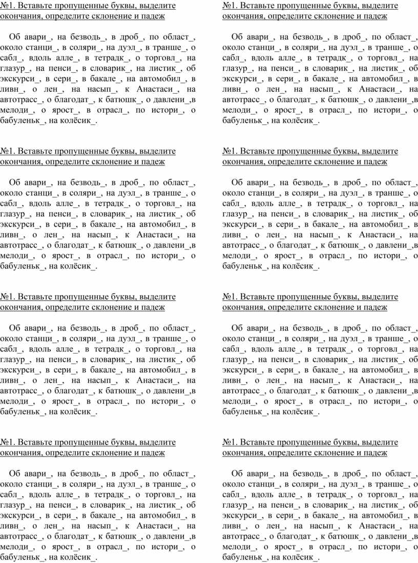 №1. Вставьте пропущенные буквы, выделите окончания, определите склонение и падеж