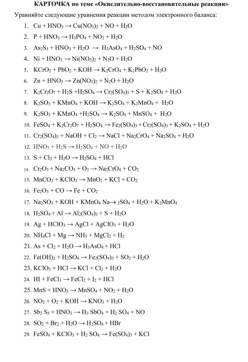 КАРТОЧКА по теме «Окислительно-восстановительные реакции»
