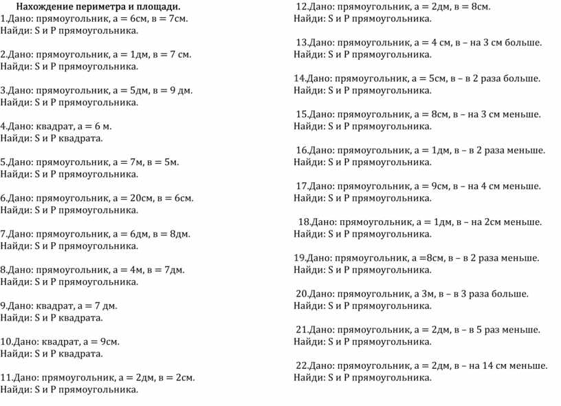 18.Дано: прямоугольник, а = 1дм, в – на 2см меньше.