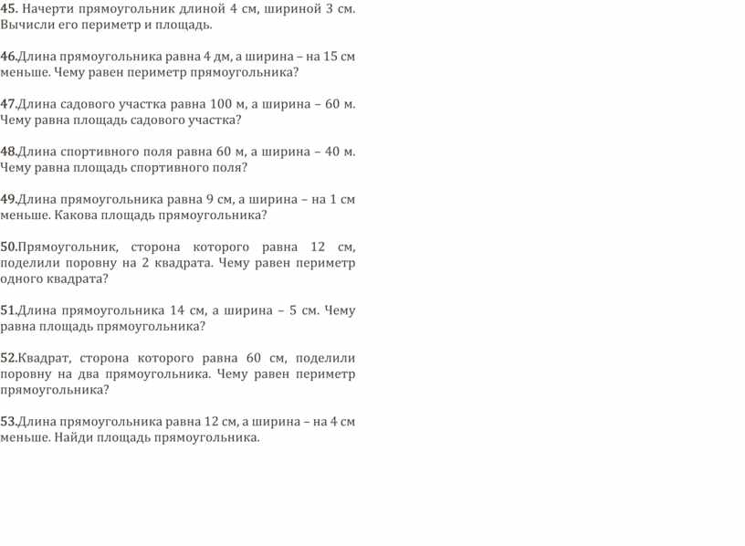 47.Длина садового участка равна 100 м, а ширина – 60 м. Чему равна площадь садового участка?