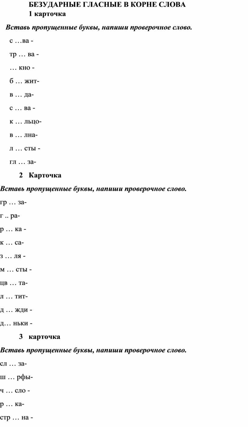 БЕЗУДАРНЫЕ ГЛАСНЫЕ В КОРНЕ СЛОВА