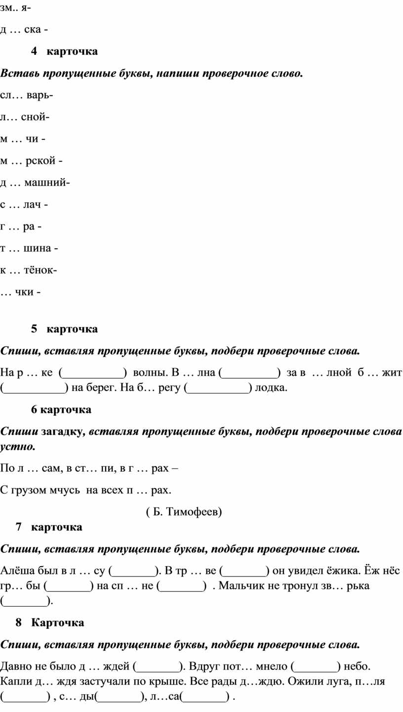 Спиши, вставляя пропущенные буквы, подбери проверочные слова.