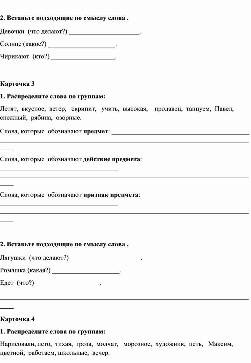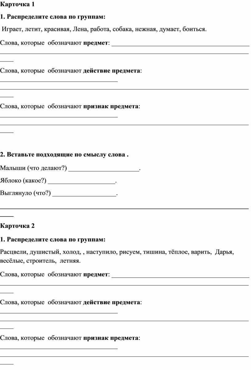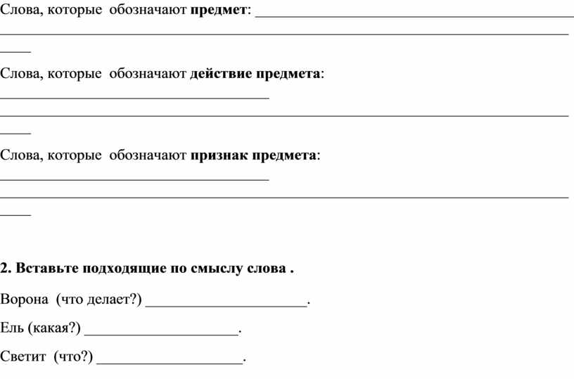 Слова, которые обозначают предмет: _________________________________________ ______________________________________________________________________________