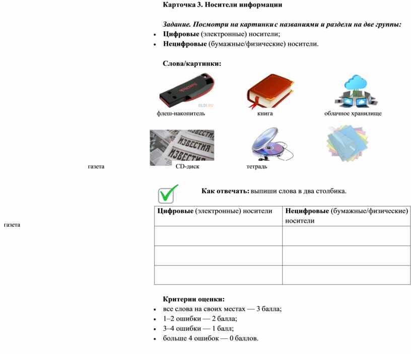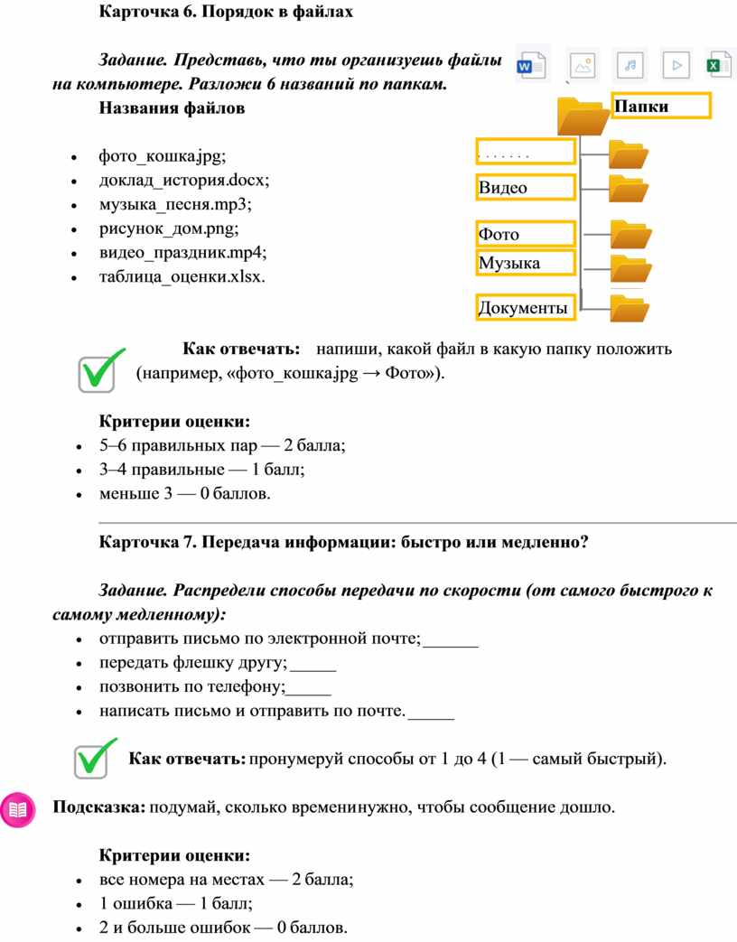 что ты организуешь файлы на компьютере. Разложи 6 названий по папкам.