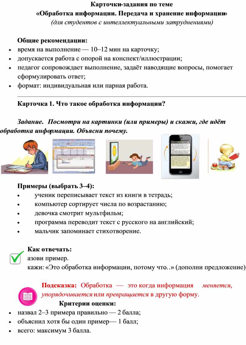 примеры) и скажи, где идёт обработка информации. Объясни почему.